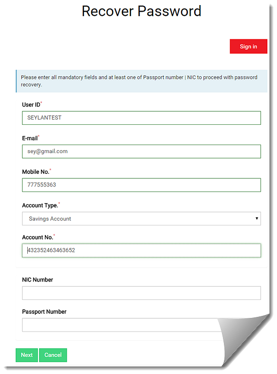If you have forgotten your password, you must enter your personal details and send a request to the bank. The bank will then respond to you with a new password that will enable you to sign in to the application.